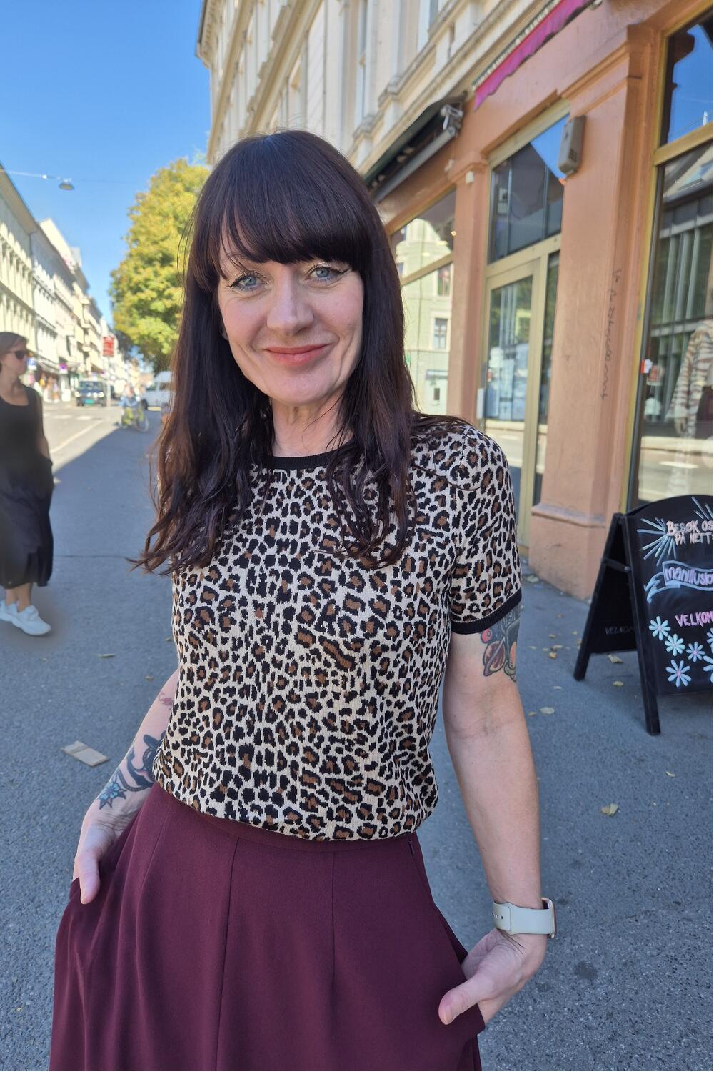 Ta fram din indre Sheena i denne toppen. Sheena er en retro rockabilly strikket genser med rund hals og korte ermer.