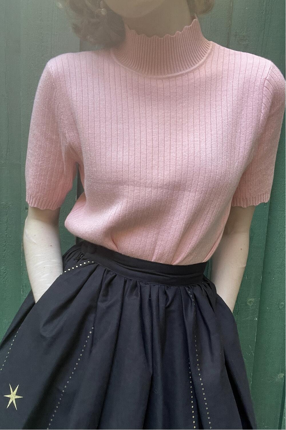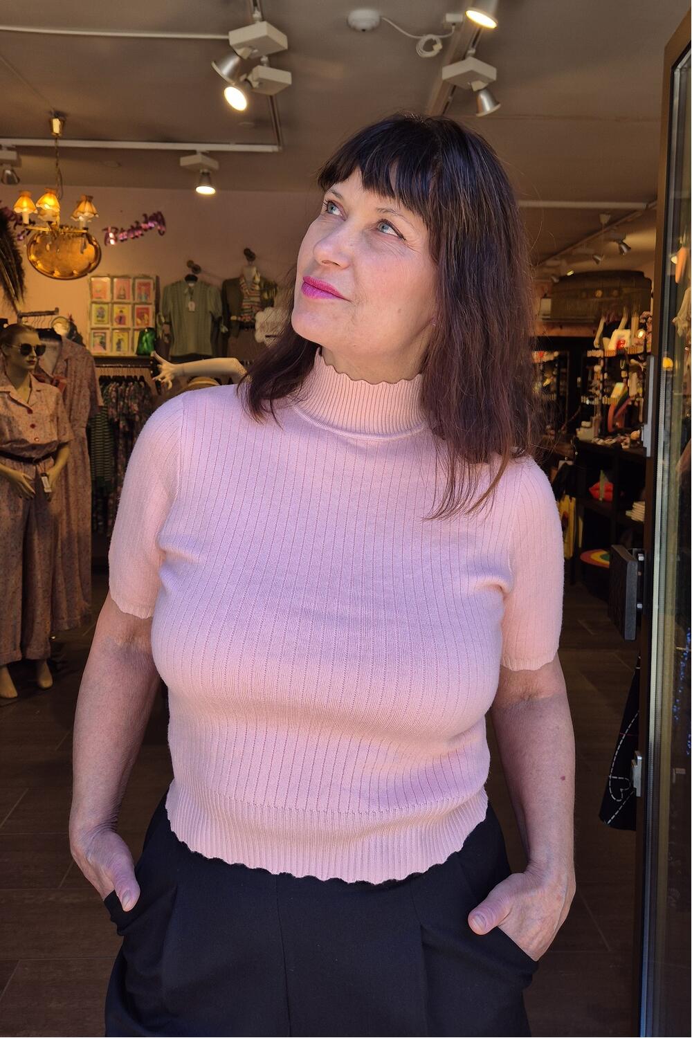 Med høy hals og halvlange ermer, lekre bølgekant-detaljer på hals, ermer og midje. Ekstra elegant. Style med skjerf i halsen, eller et smykke om du vil.