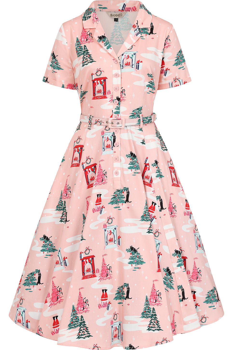 Banned Kjole Bella Purrfect Xmas rosa