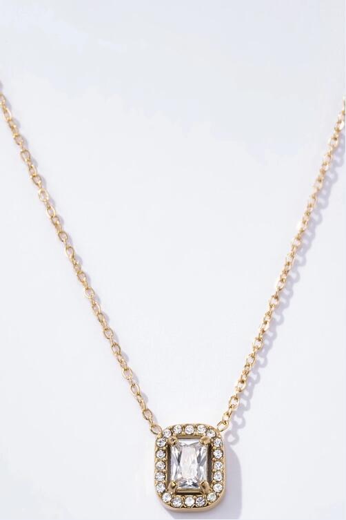 Her et kjede med en stor strassdiamant på et gullfarget kjede. Som en drøm av et smykke.