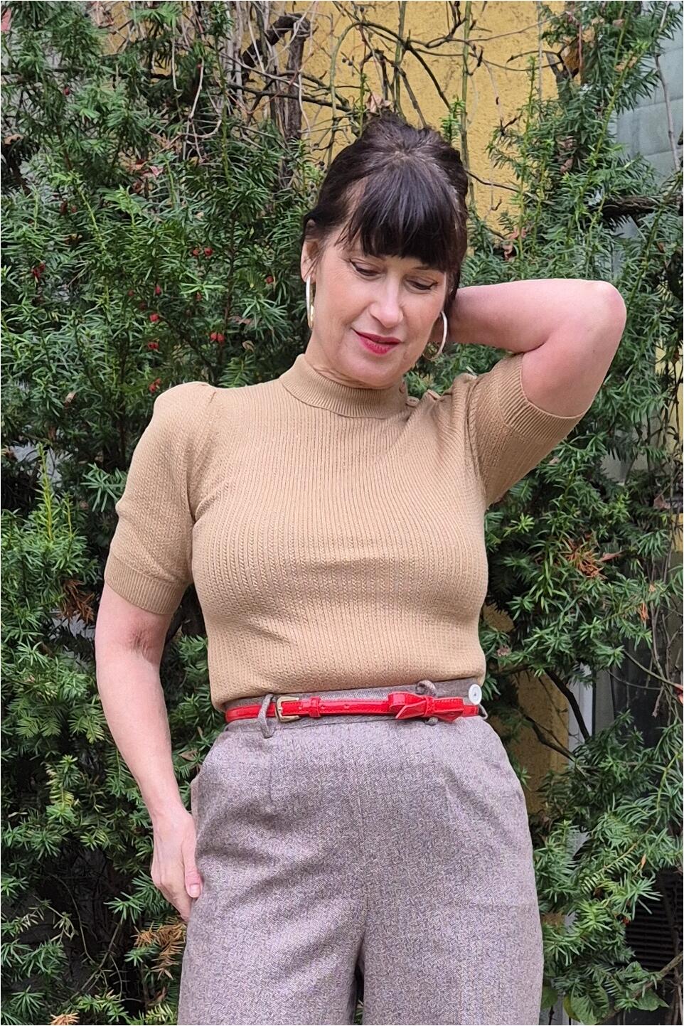 Denne toppen er inspirert av gensere fra 30, 40 og 50-tallet. Strikket i myk ull med glitterdryss. En fantastisk topp til hverdags, men helt nydelig til fest.