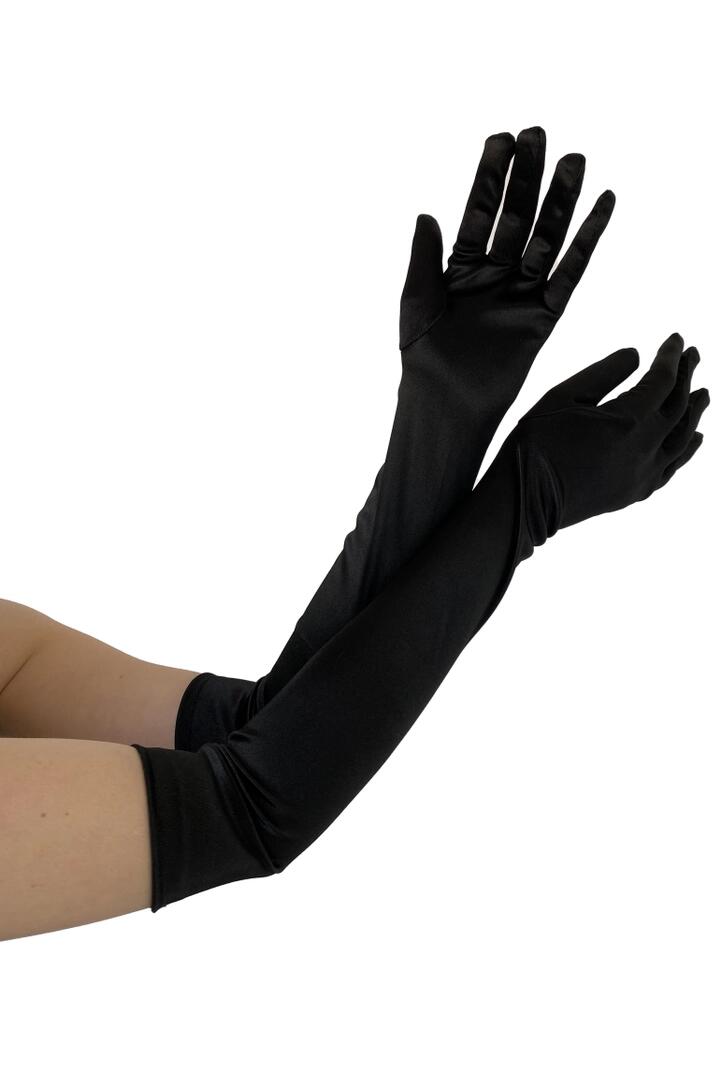 Lange operahansker i sort sateng. Hever alle dine festantrekk! Stretchy og myke.