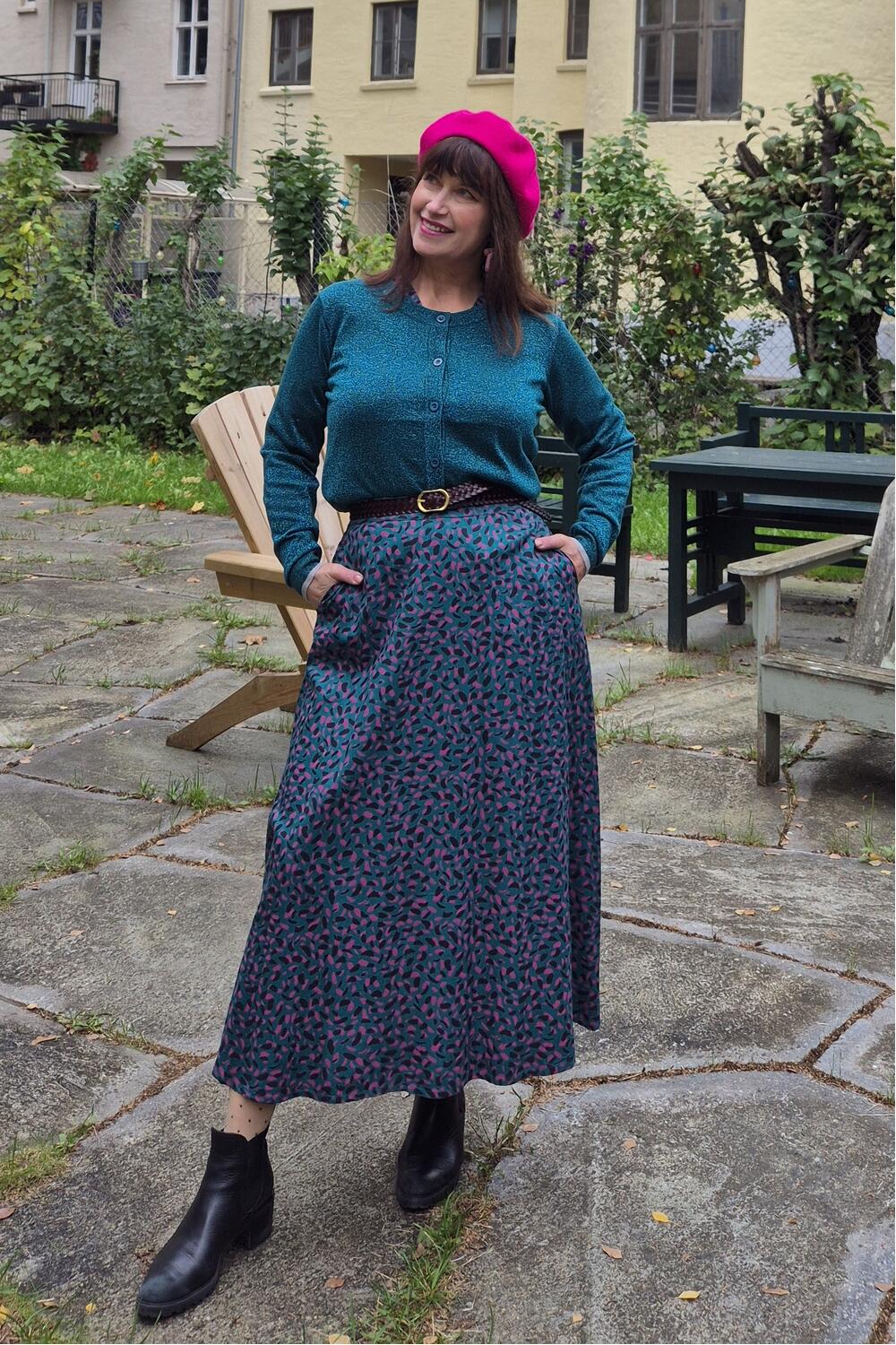 Ophelia har rund hals og kneppes foran, eller bruk åpen over en kjole, en fin topp om du vil. Med kontraster i hvitt rund mansjetter, hem og hals.