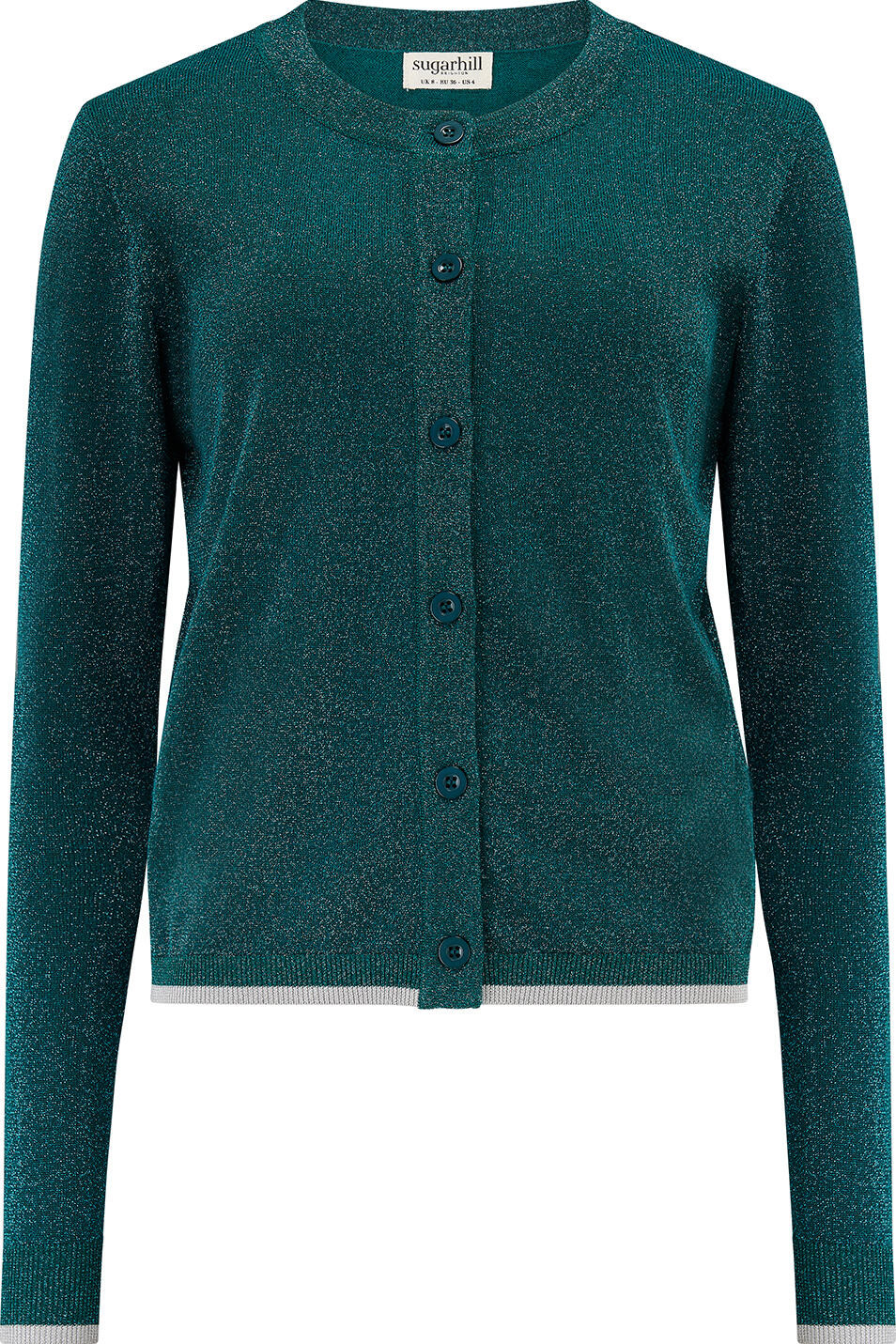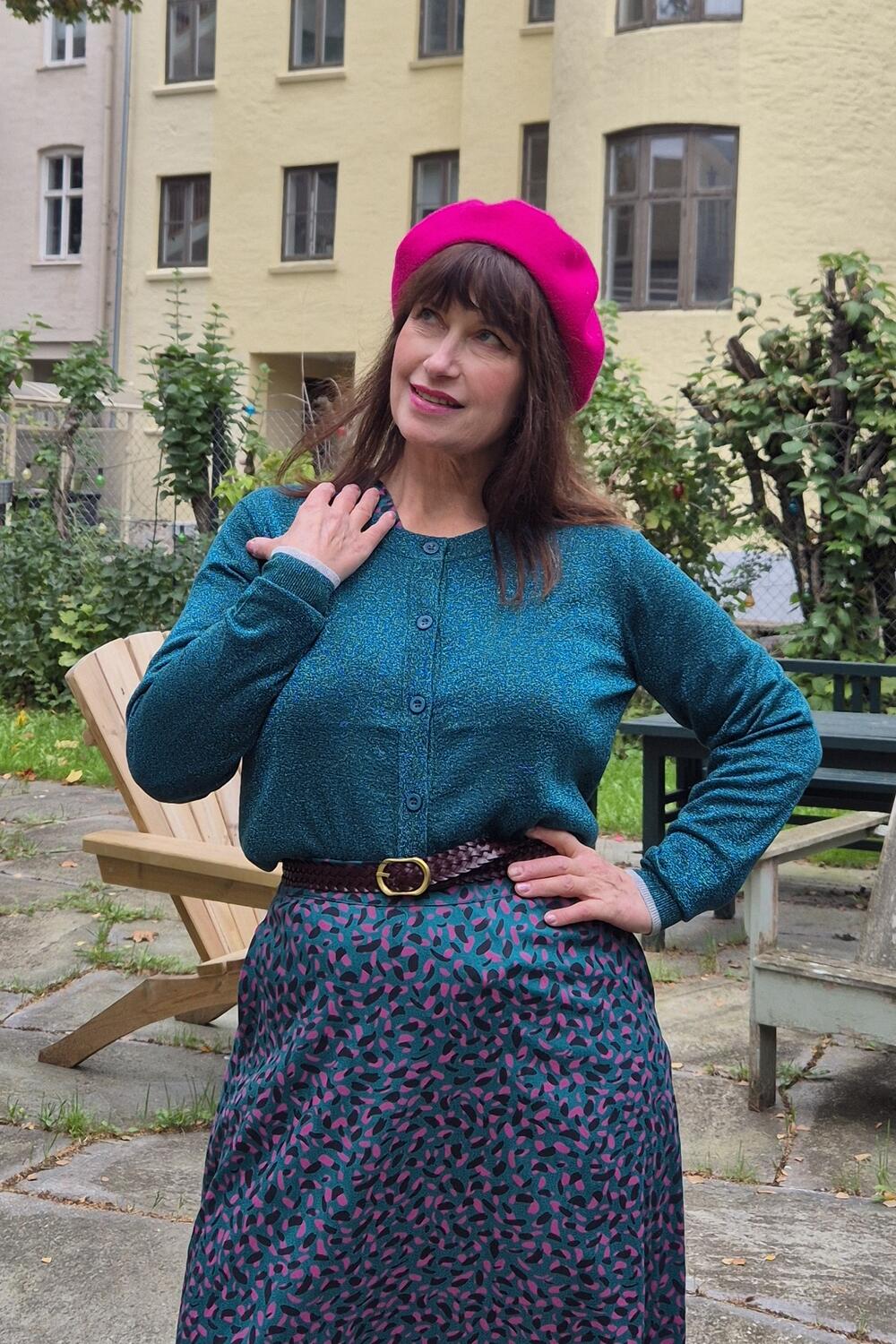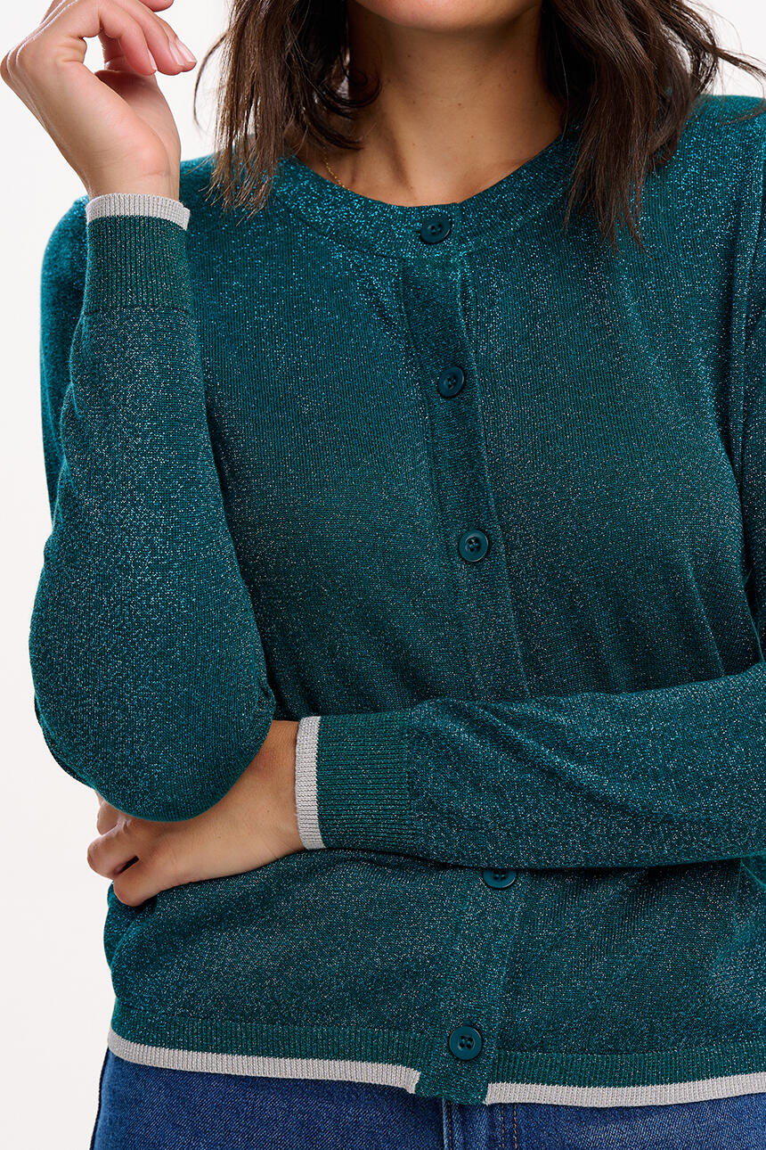 Ophelia er en glitrende fest av en cardigan i petroleumsblå med - ja - glitter! Perfekt til festantrekkene, eller når du bare vil ha litt fest i antrekket ditt. Som over jeans f.eks.