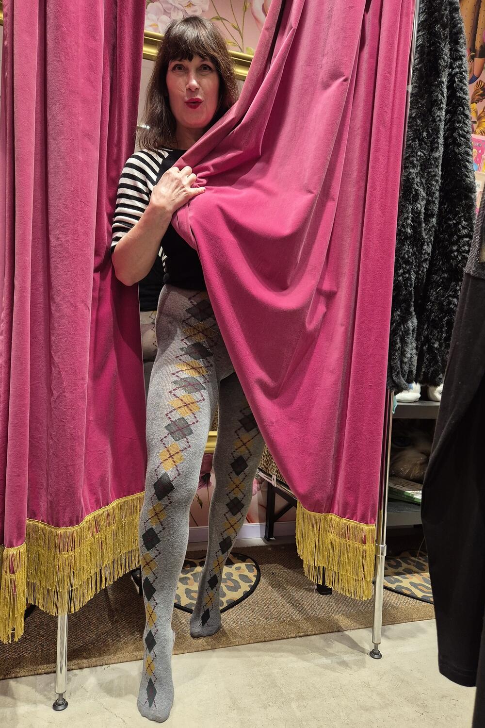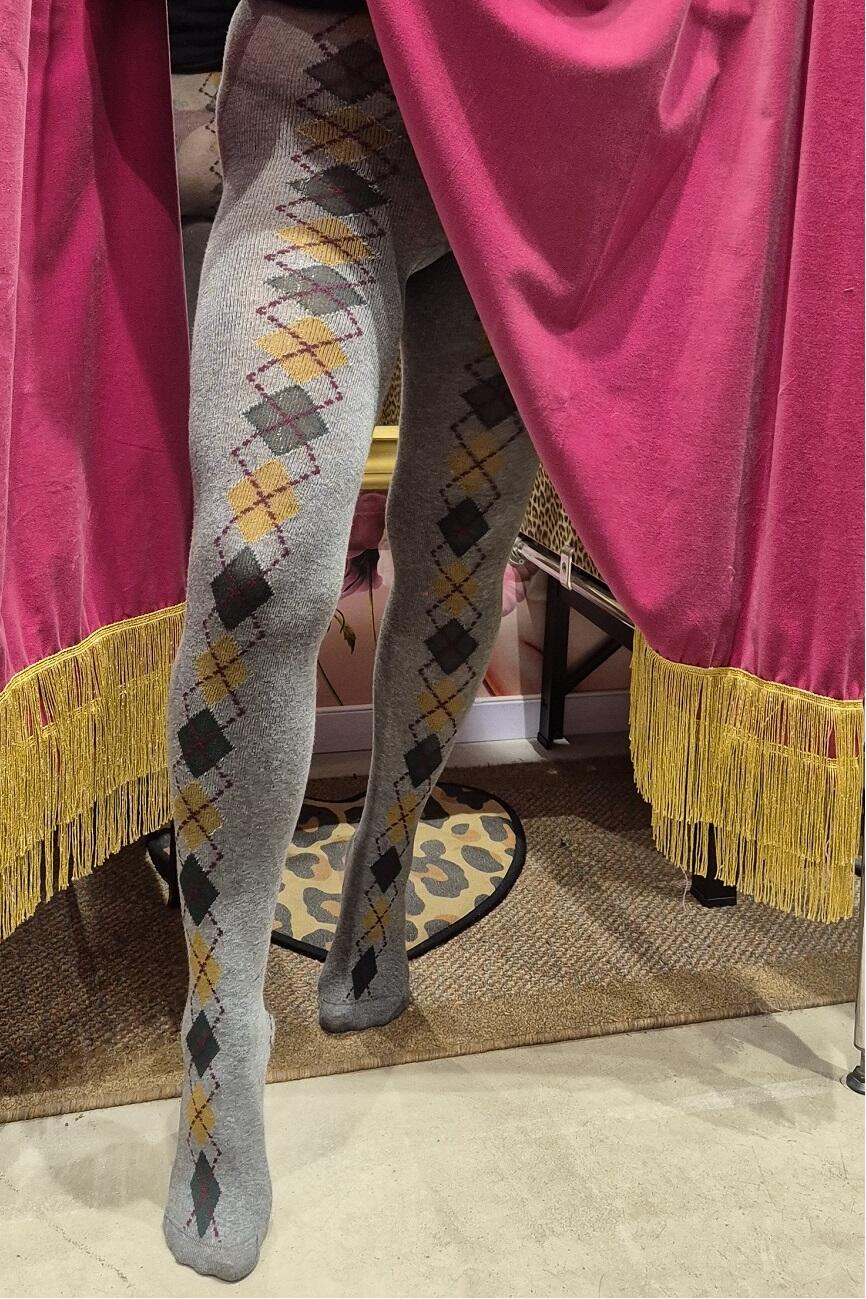 Kristina er nydelige strømpebukser med et herlig diamantmønster i grønt, burgunder og sennep. Den er strikket og vil gi deg masse varme på kalde dager. Med forsterket tå og en midje som holder seg på plass. Vi håper du vil digge den like mye som vi gjør.