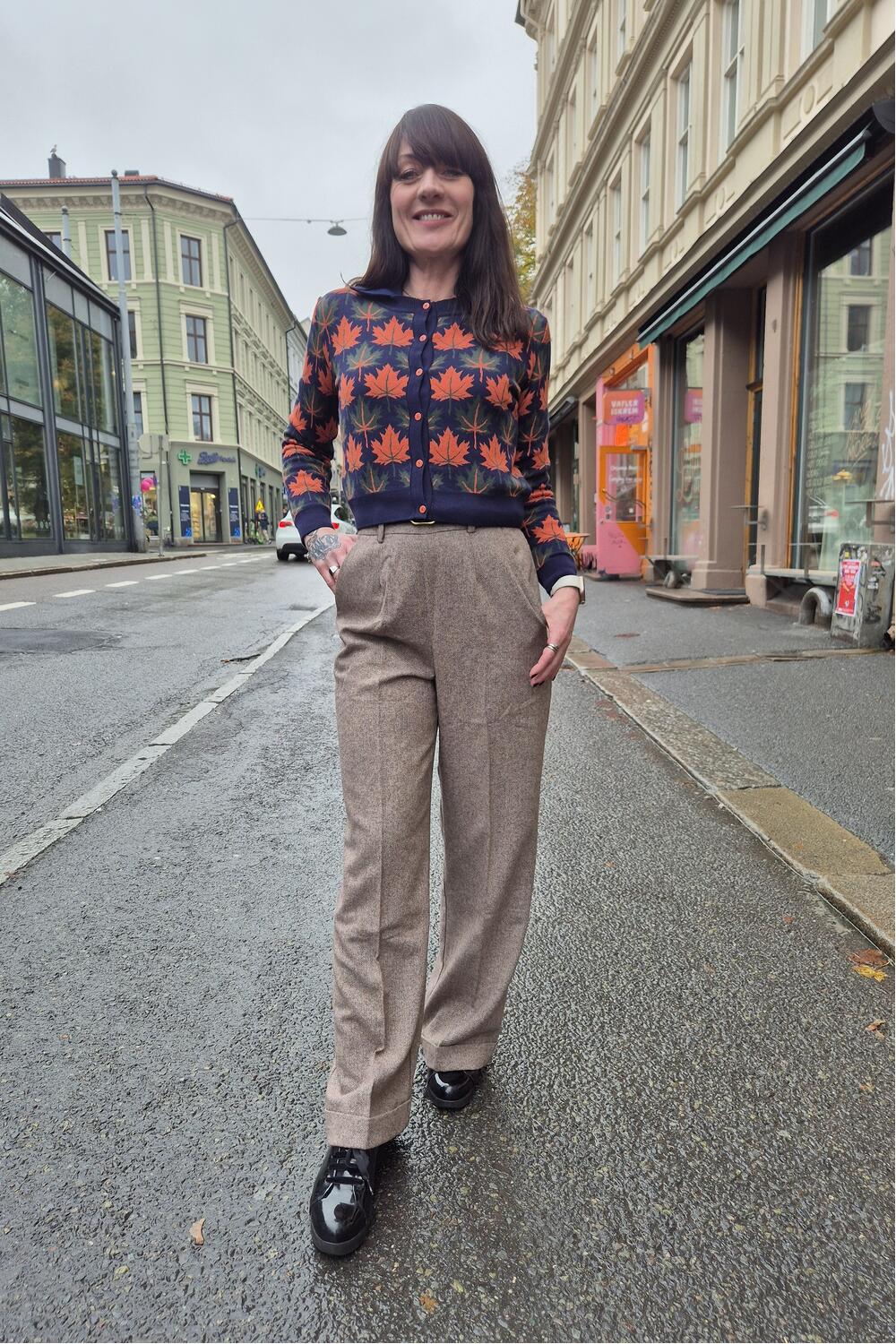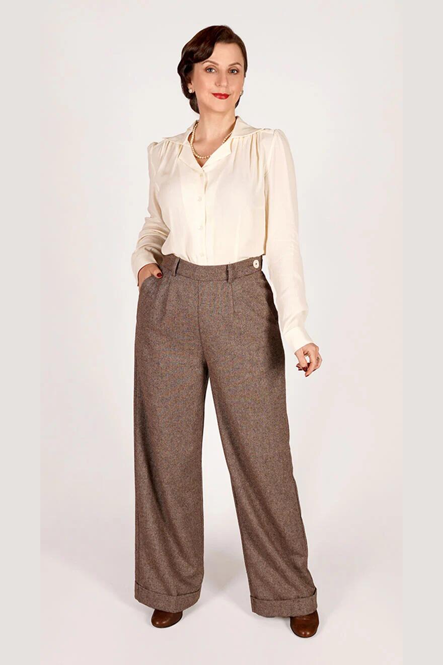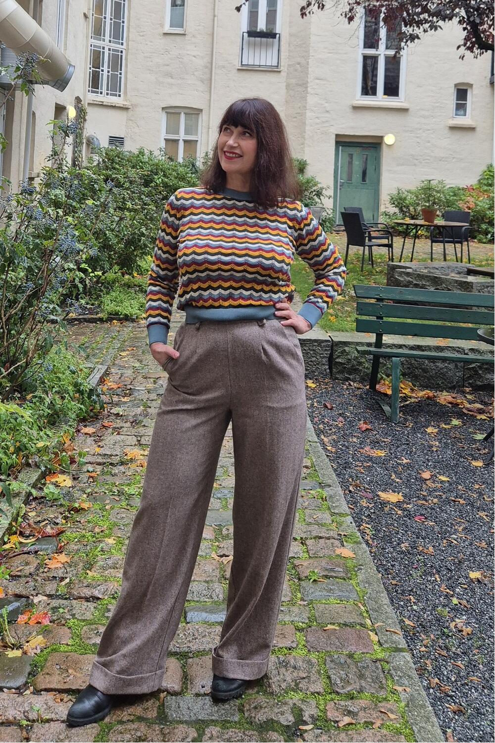 Klassiske bukser med litt vidde i bena. Disse er inspirert av 30- og 40-tallets filmstjerner Marlene Dietrich og Katherine Hepburn. Designet for å være flatterende på alle kropper.