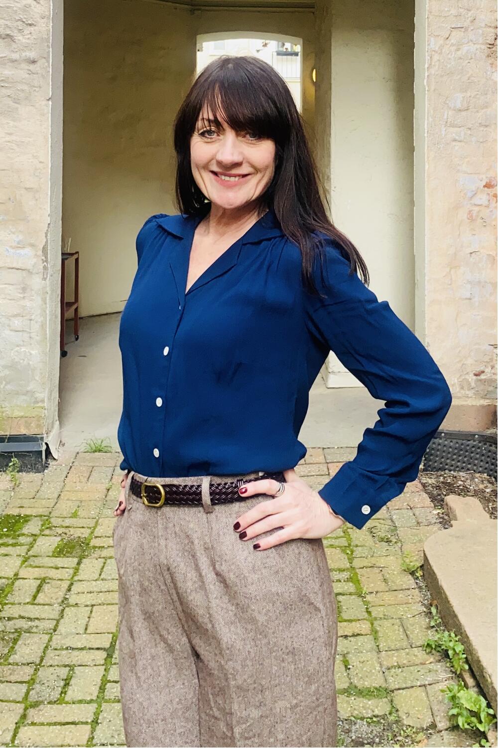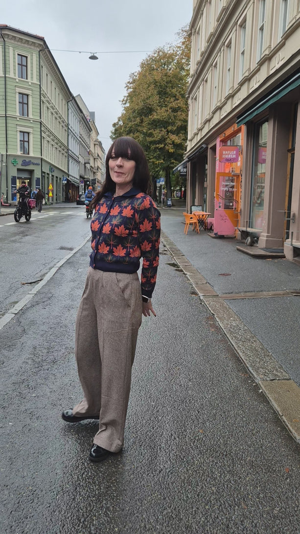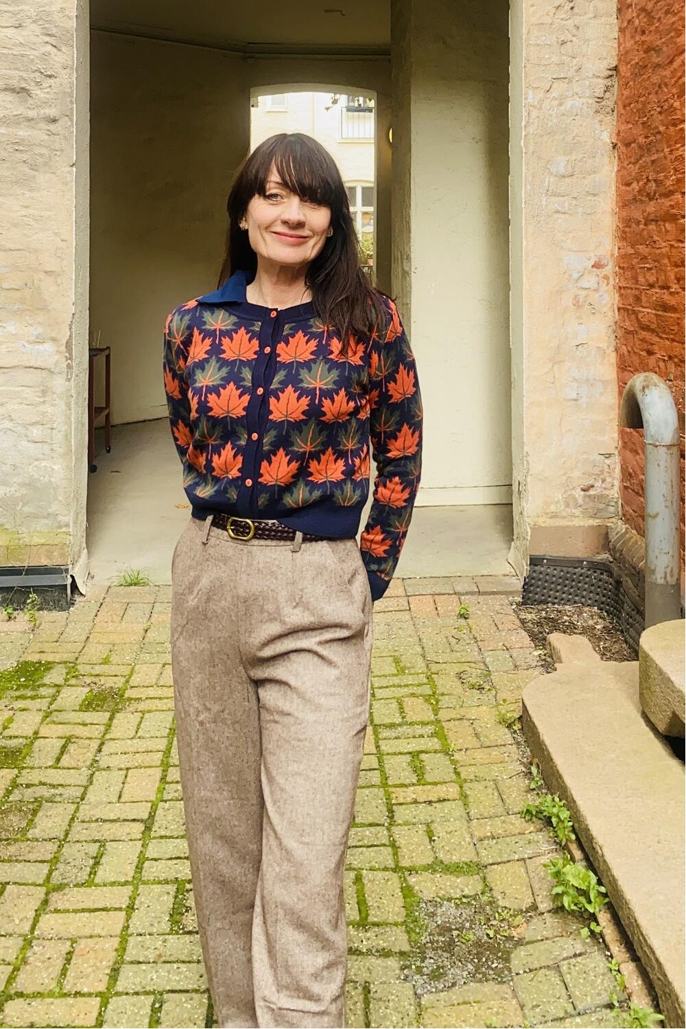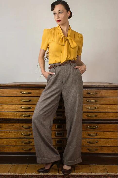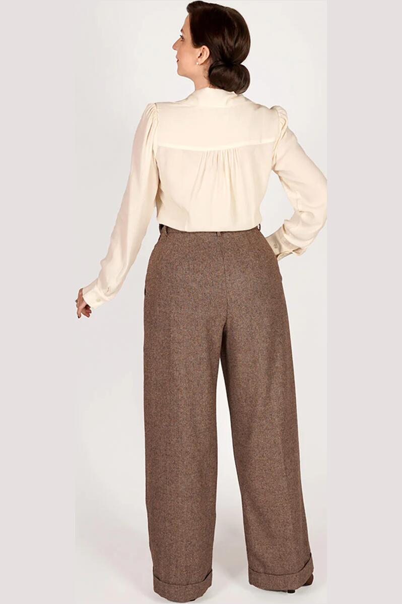 Klassiske bukser med litt vidde i bena. Disse er inspirert av 30- og 40-tallets filmstjerner Marlene Dietrich og Katherine Hepburn. Designet for å være flatterende på alle kropper.